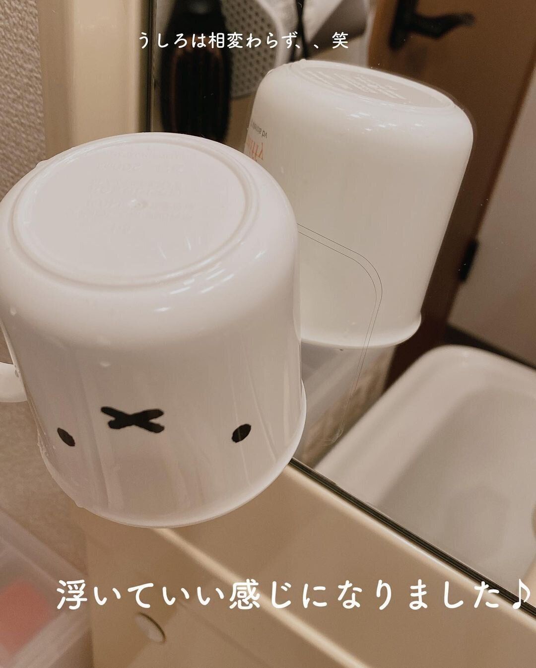 水回りのコップなどの収納は浮かせるのが便利です。セリアの何度でも貼ってはがせるフィルムフックコップホルダーは、その名の通り何度でも貼ってはがせるから、とても使いやすいと評判です。タイルやガラス、鏡などにピタリと貼れるのがいいですね。