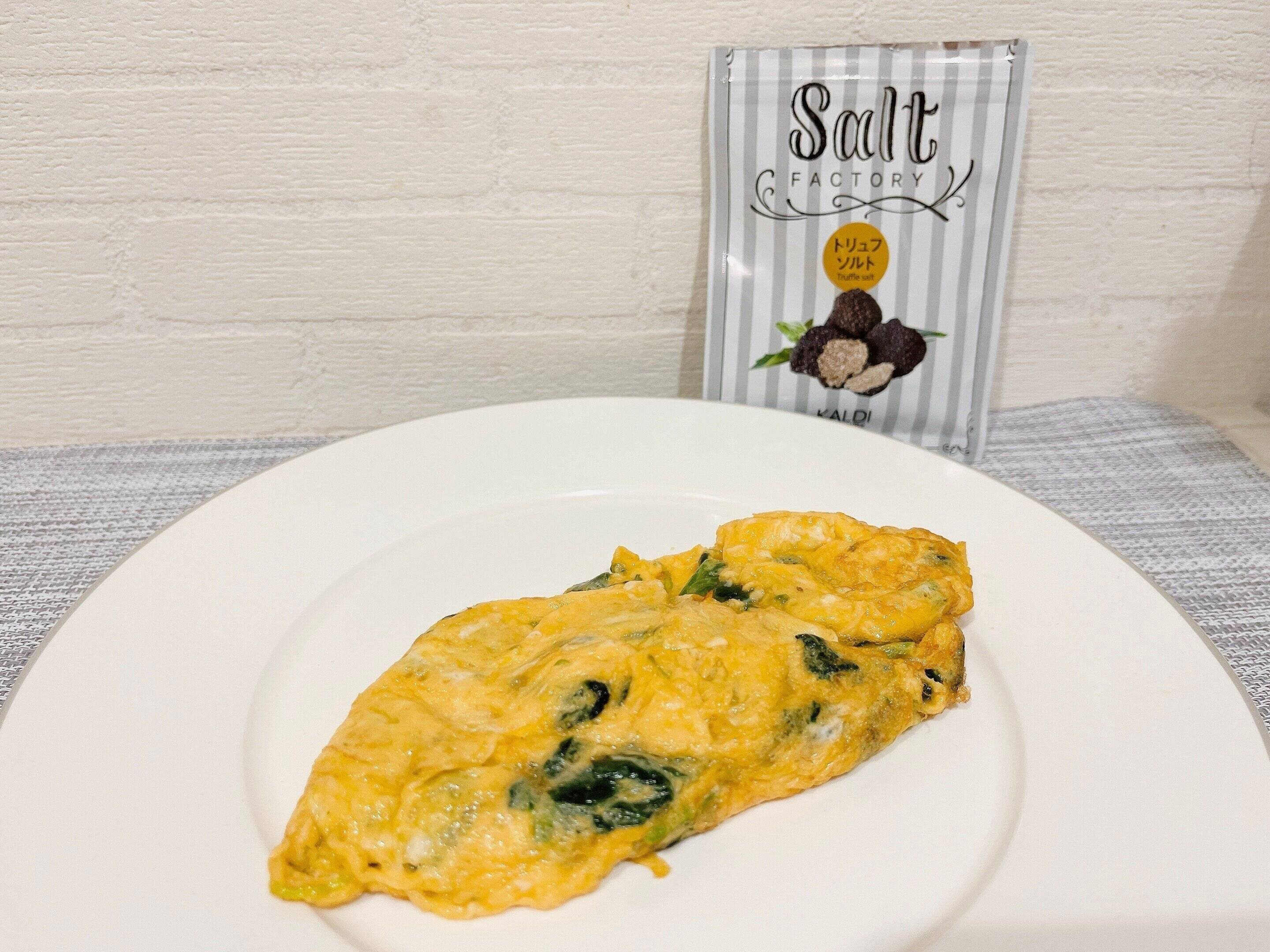 一般的にはバターを使用してつくったり、ケチャップをかけて食べることが多いですが、トリュフ塩をかけると、卵とトリュフの風味がマッチして高級ホテルでオムレツを食べているような味になるんです!
