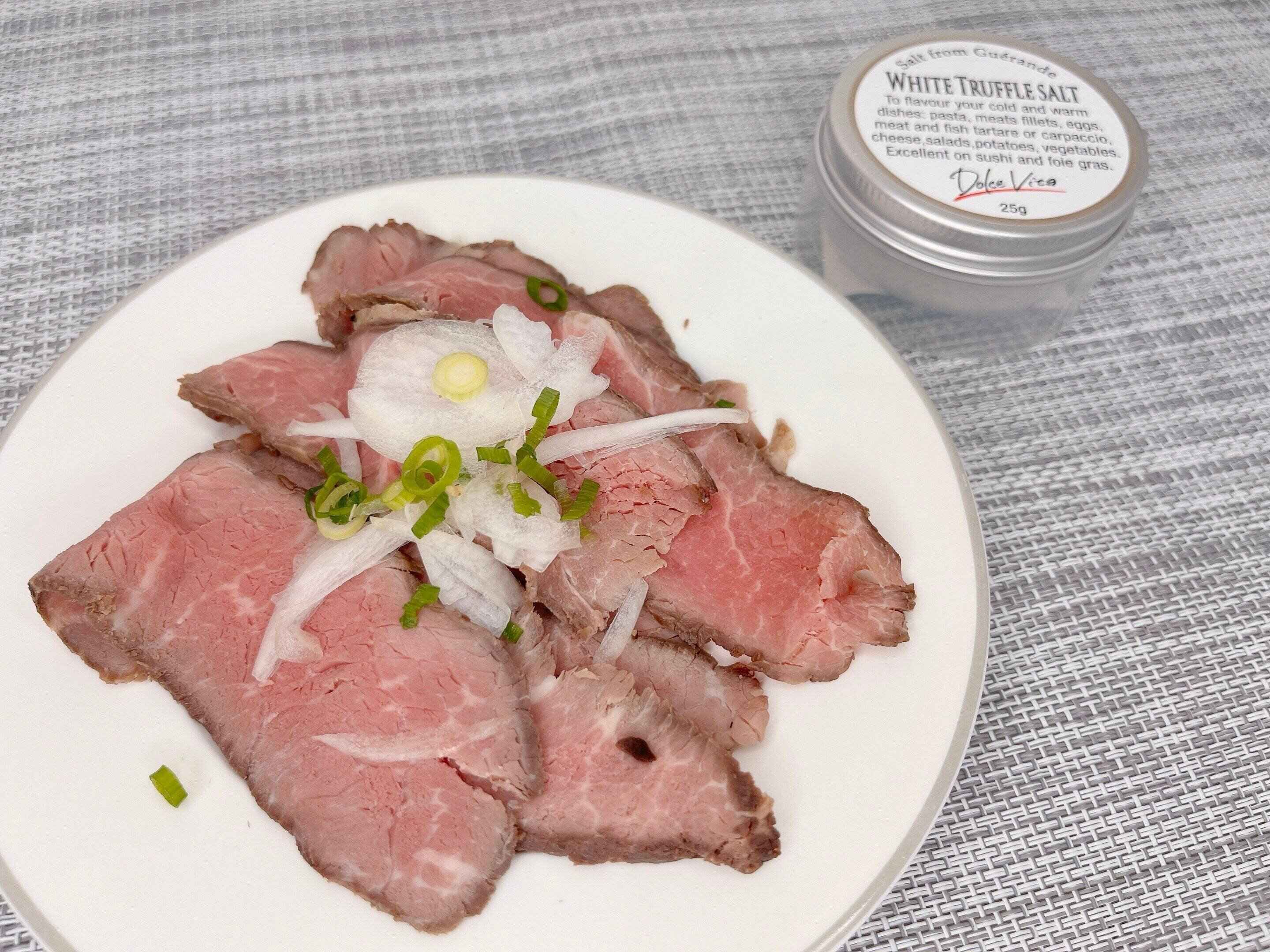 トリュフ塩と言ったら肉!ステーキなどの焼いた肉などにはもちろん合いますが、「ローストビーフ」との相性も抜群です。トリュフ塩の塩味がお肉そのものの味を引き立て、しっかりしたトリュフの味が柔らかい「ローストビーフ」と絶妙にマッチして、醤油ベースのソースとは違いさっぱりいただけてとってもおいしいです。おもてなし料理にもぴったりですよ。