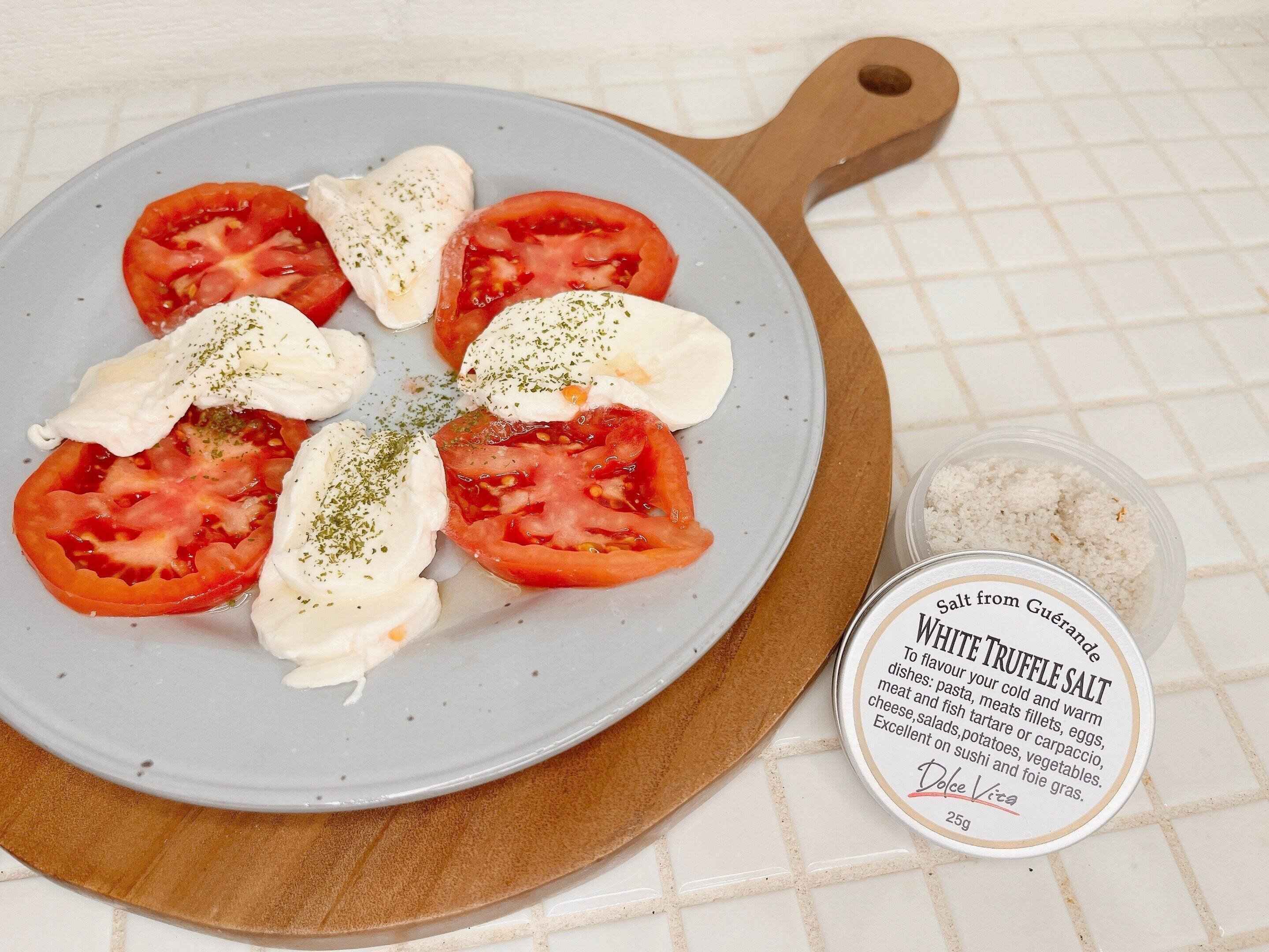 トリュフ塩はイタリア料理定番の前菜、「カプレーゼ」ともよく合います。