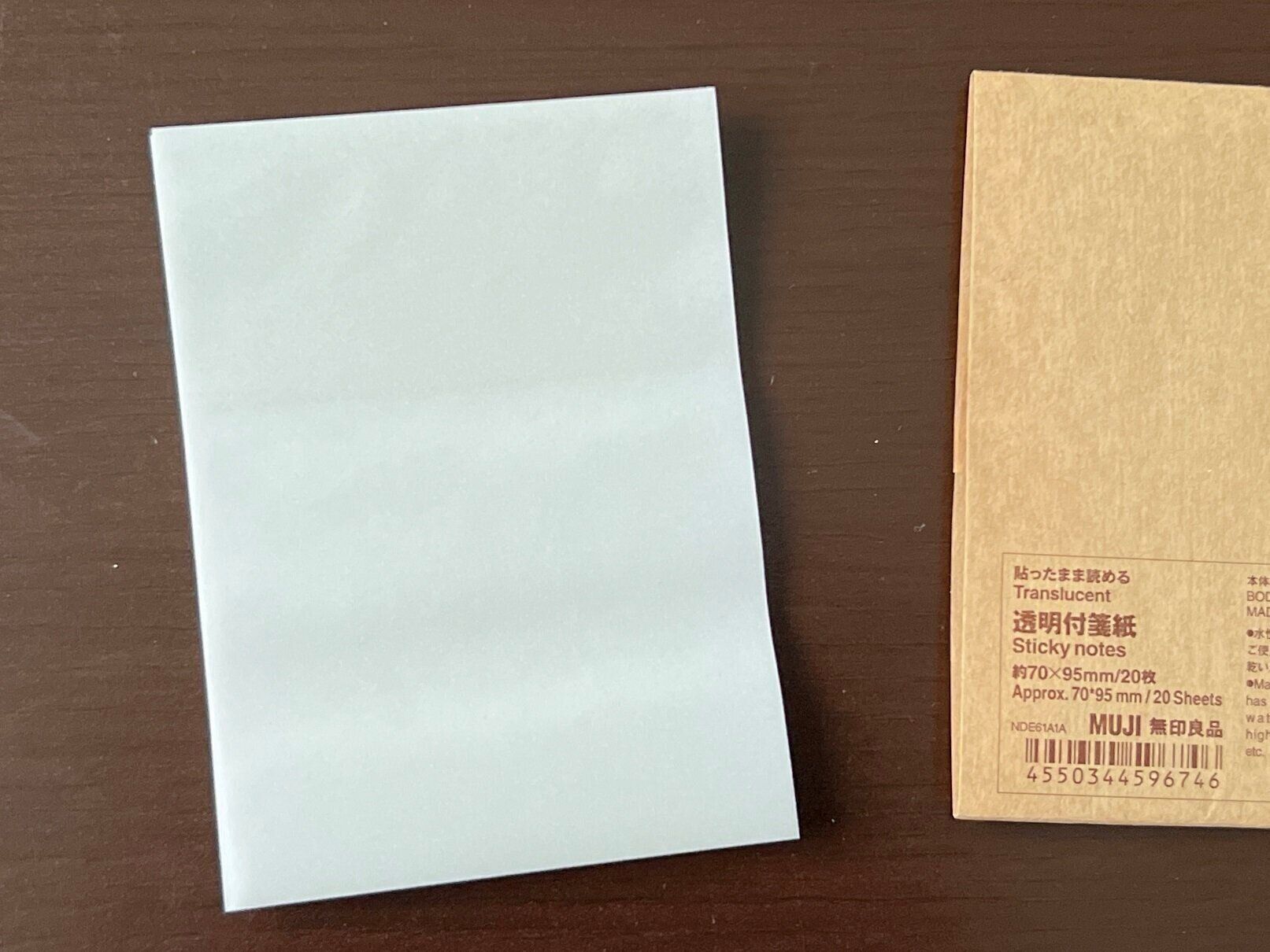 今回ご紹介する無印良品の「貼ったまま読める付箋紙」は1枚あたりのサイズ約70×95mmの付箋が20枚入って、価格は350円。