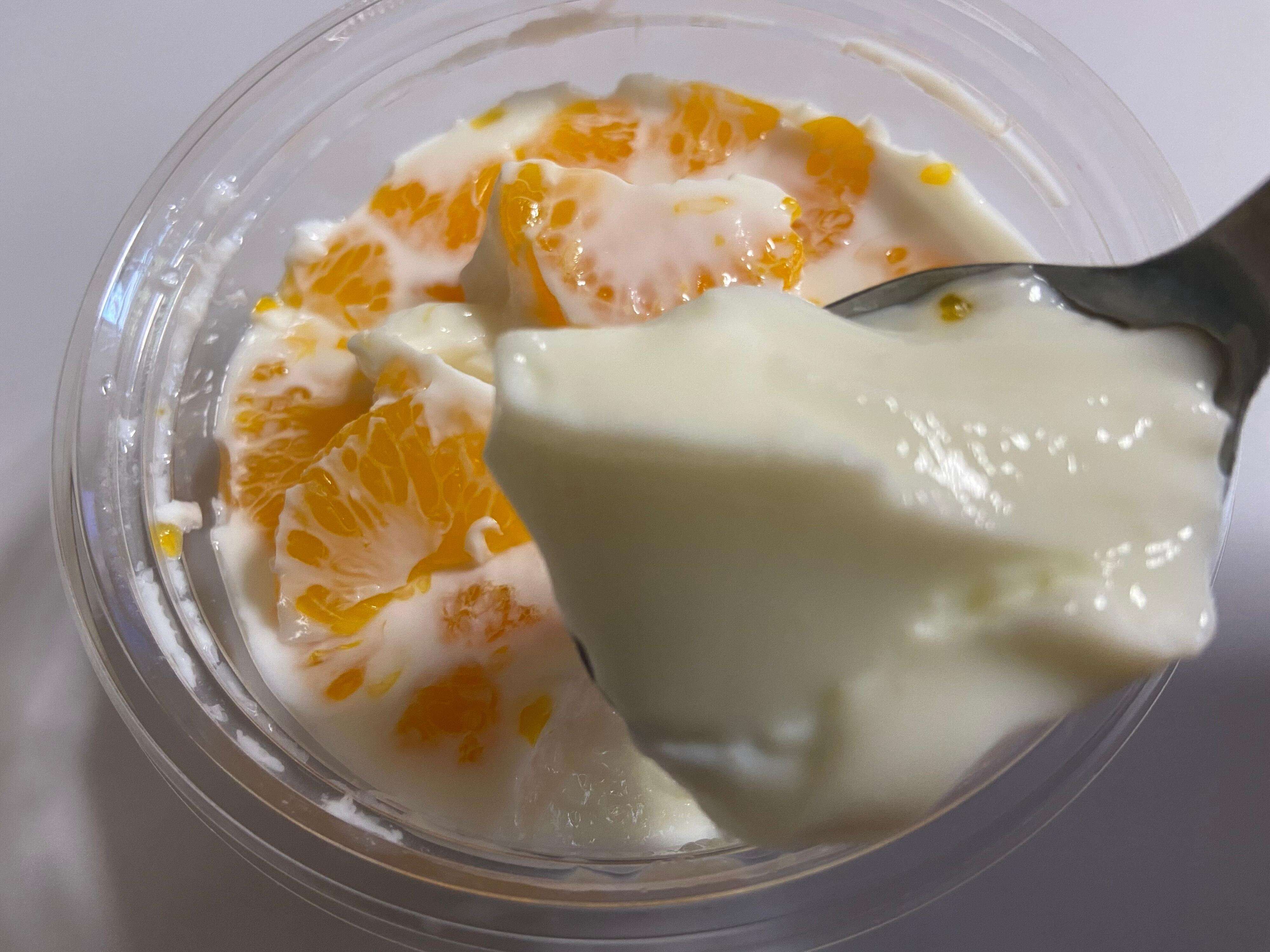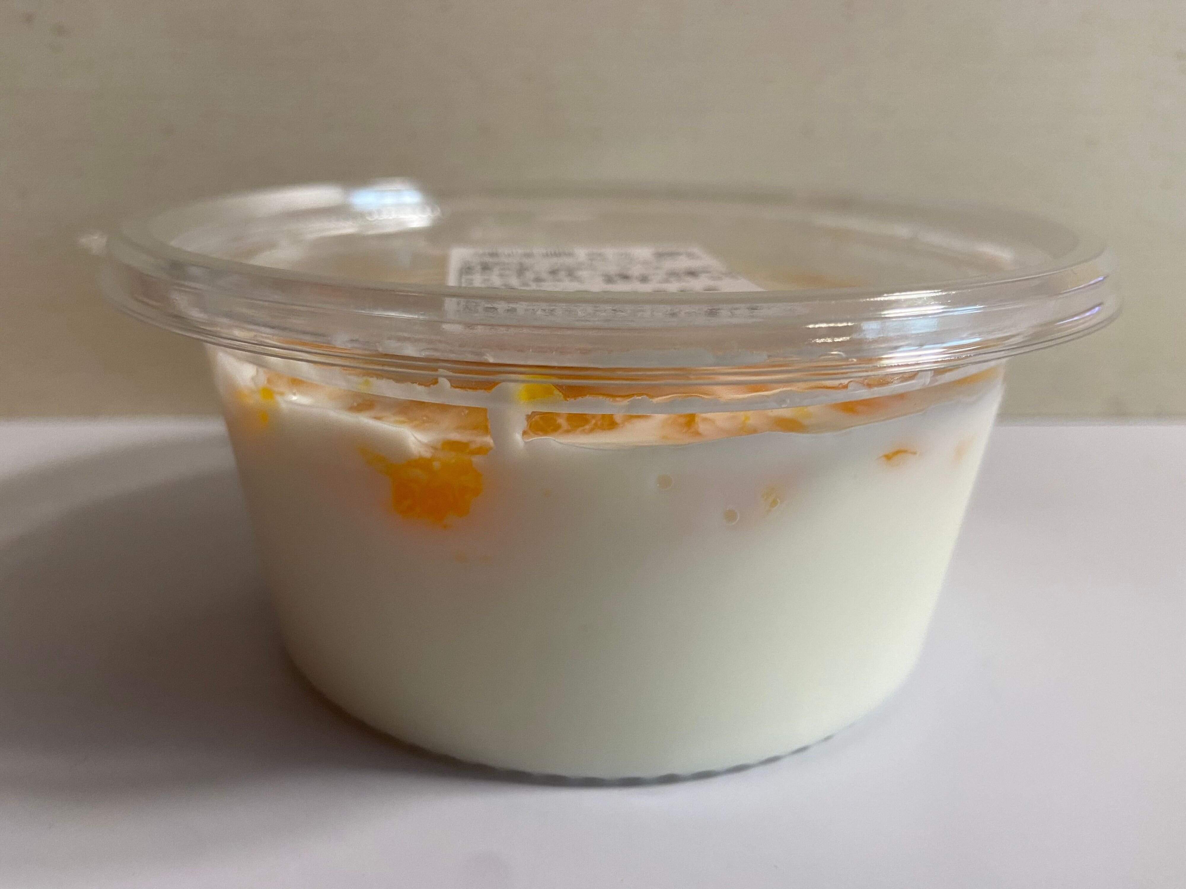 ミルクゼリーの上にはジューシーなみかんがたっぷり!甘酸っぱさがたまりません。