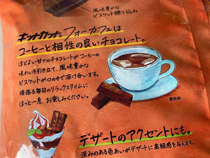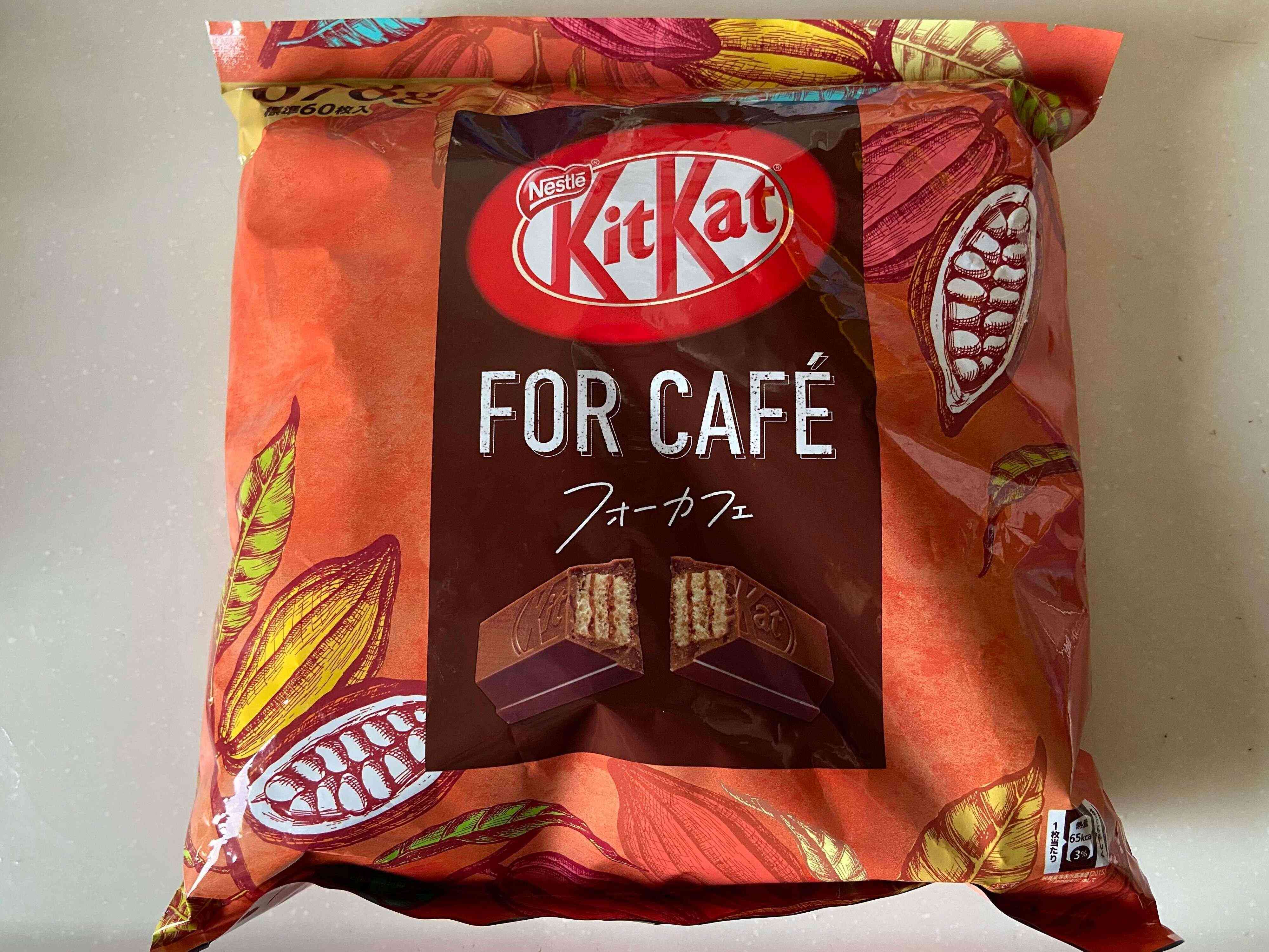 「フォーカフェ」と商品名がついているとおりコーヒーと合うように作られていて、外食・業務用に作られた一般ではあまり流通していないキットカットなんです。