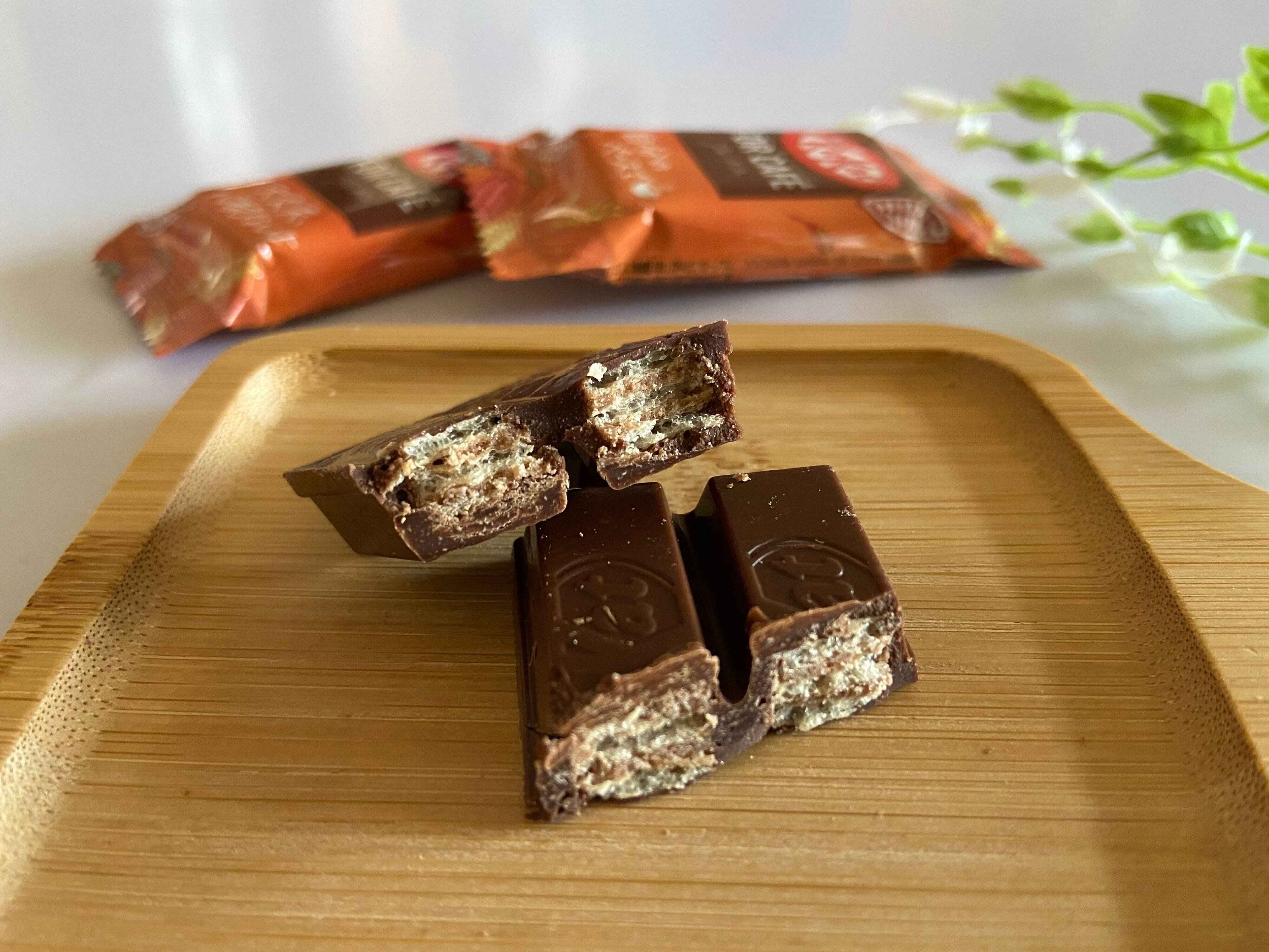 スタンダードなキットカットとの違いは、まず甘さ。少し控えめで食べやすいところが気に入っています。