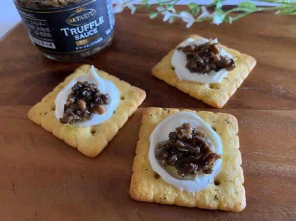 クラッカーにチーズとトリュフソースをトッピングしてみました。