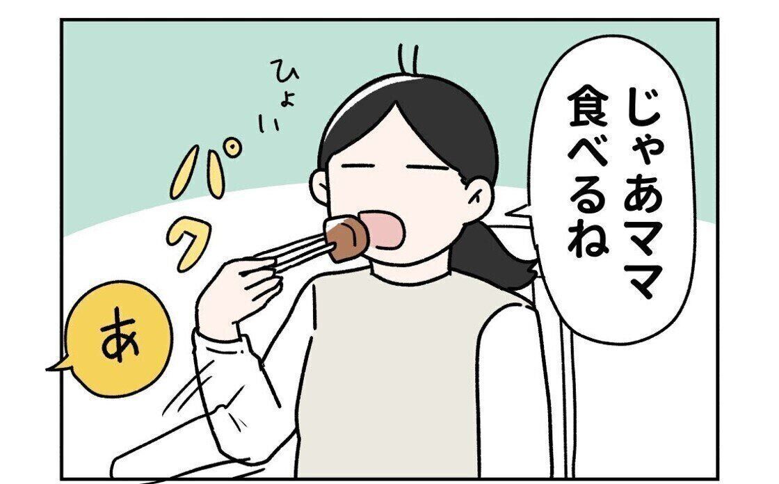 「じゃあママ食べるね」と、えぽちゃんが残したおかずをパク!