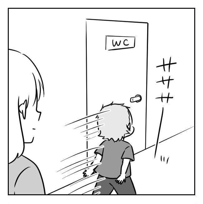 一見、冷静に見えるタソさんですが、息子さんがトイレのドアを閉めるのを見届けたあと……。