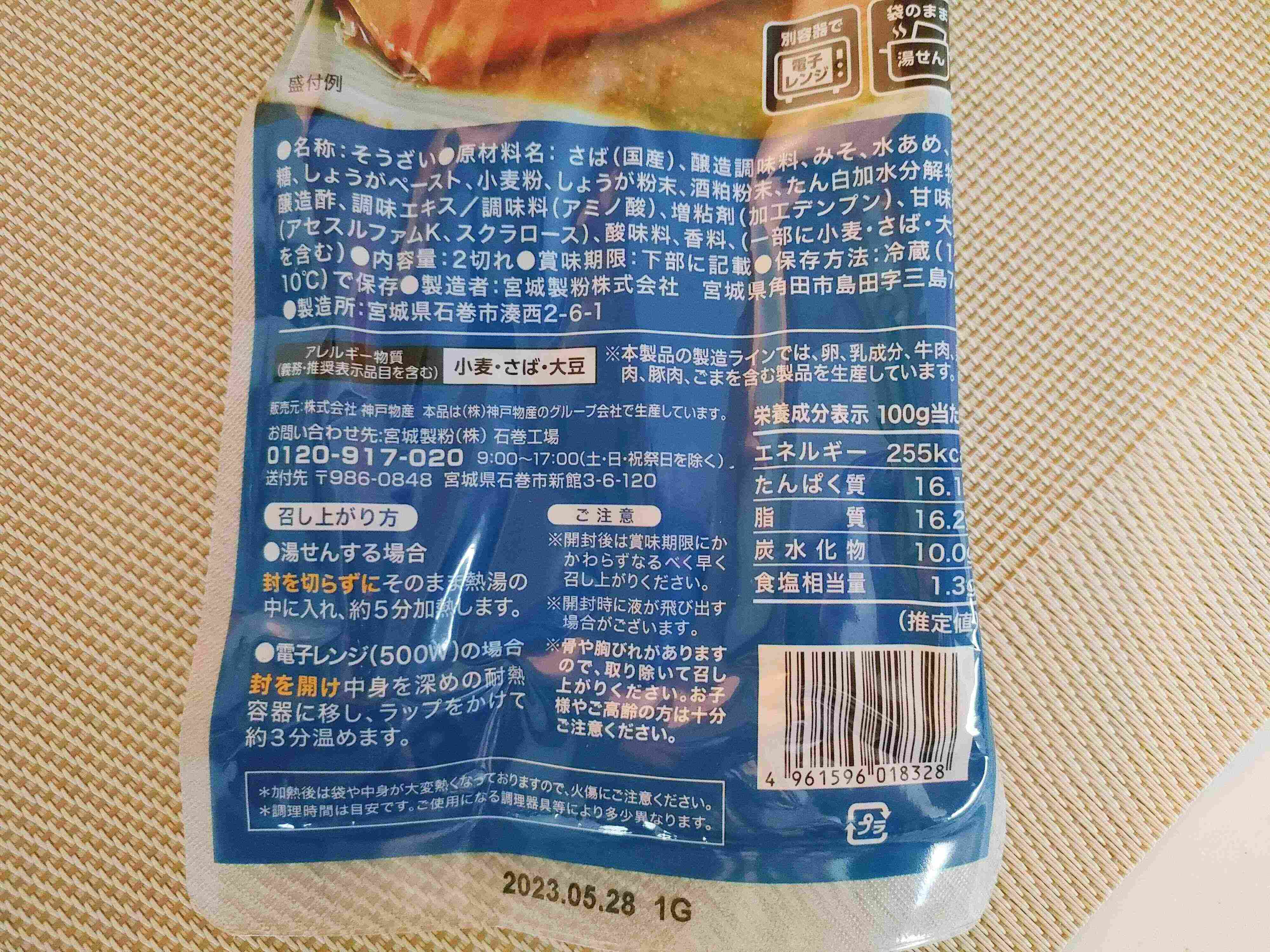 原材料には国産さば、みそ、水あめ、しょうが、小麦粉、酒粕などが含まれています。酒粕が入っているため、味がしっかり染みていて、上品に仕上がっている印象です。