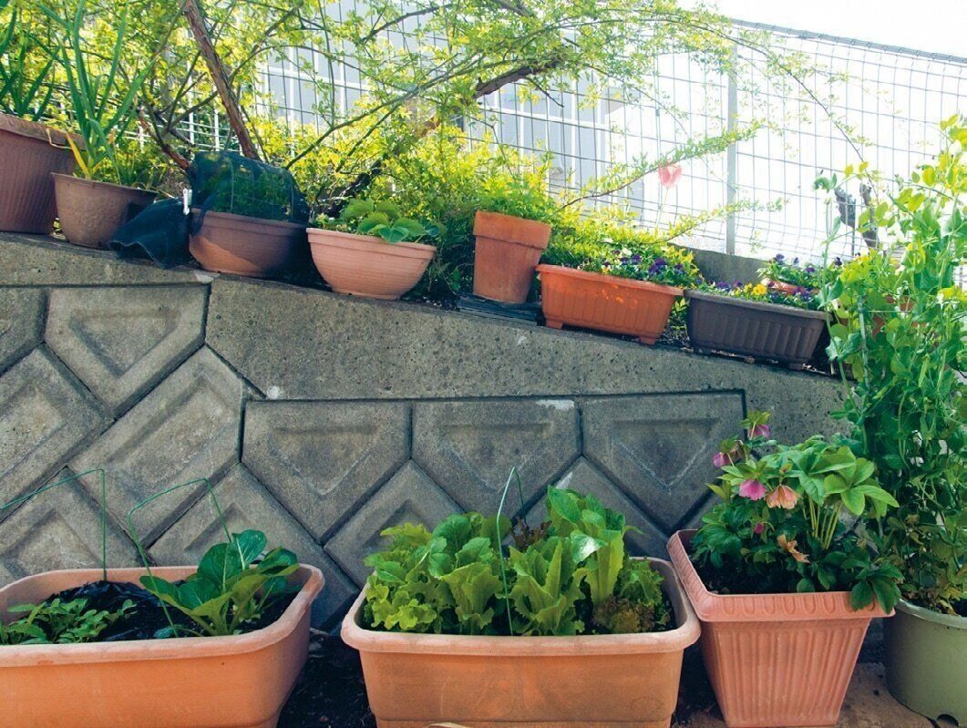 @ベランダでプランター栽培、キッチンの出窓で鉢植え