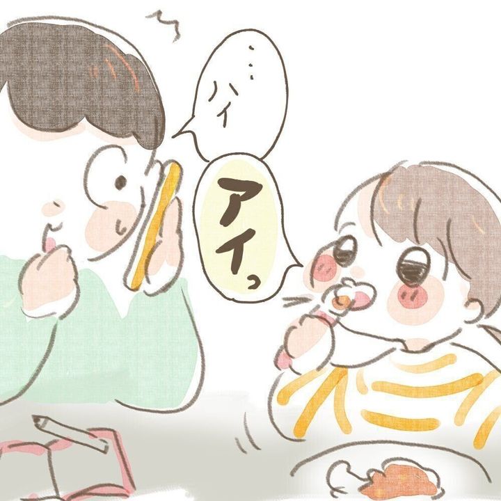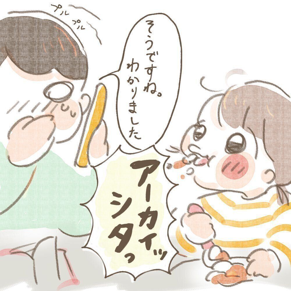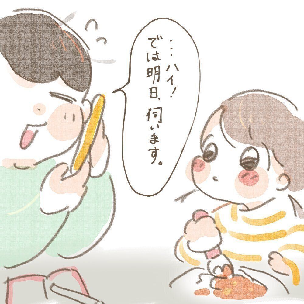 ママが「……ハイ」と電話口で返事をすると、娘さんも「アイっ」と元気よく声に出しました。
