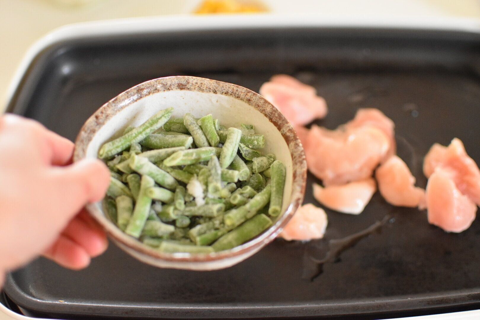 今回は、業務スーパーでコスパ抜群と人気の冷凍いんげんを使用した、休日にぴったりのホットプレート料理を、管理栄養士のhiroさんに教えていただきました。