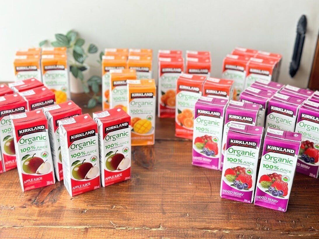 贅沢なオーガニックフルーツ100%のジュースも、コストコなら低価格!40本2,530円、1本あたり約63円と破格です。