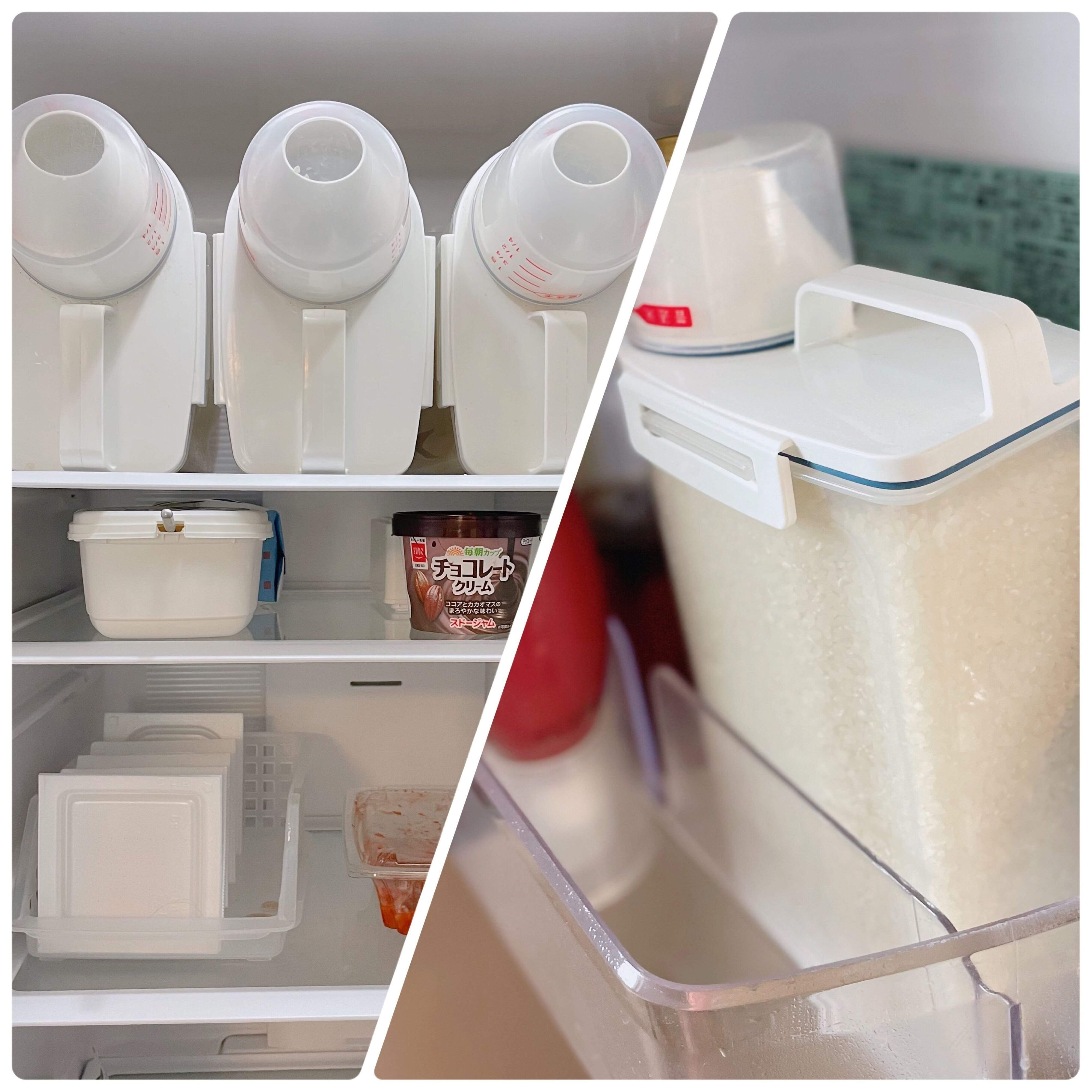 冷蔵庫の状況に合わせて置き方や個数も調整できるので、大きな米びつに占領されて食材が入らないということもありません。