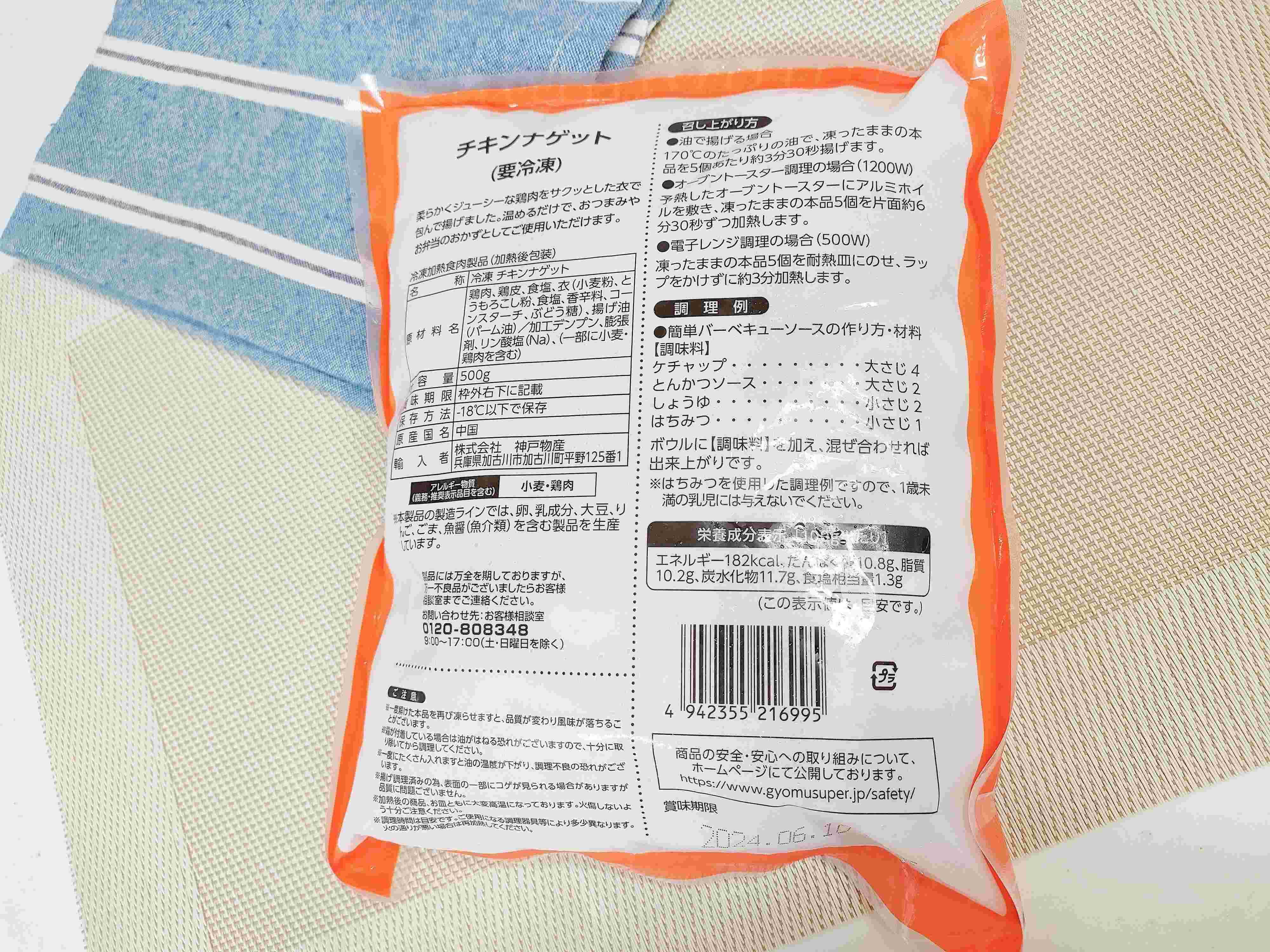 こちらが業務スーパーでおすすめ冷凍食品「チキンナゲット500g」375円です。