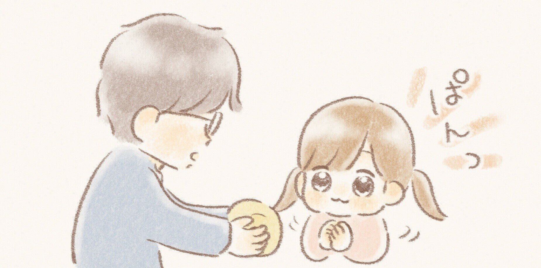 「みて~」というパパの言葉に、うにちゃんは「なにそれ~!?」と興味津々です。