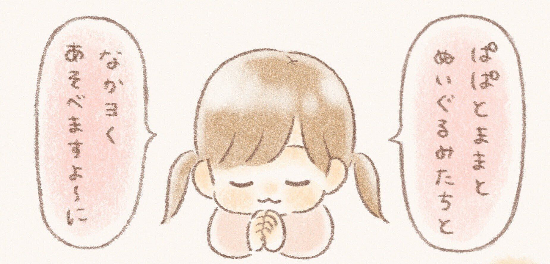 そんな勘違いだけでもかわいいのに、パパとママとぬいぐるみたちとなかよく遊びたいだなんて、お願いごとの内容までかわいすぎます!