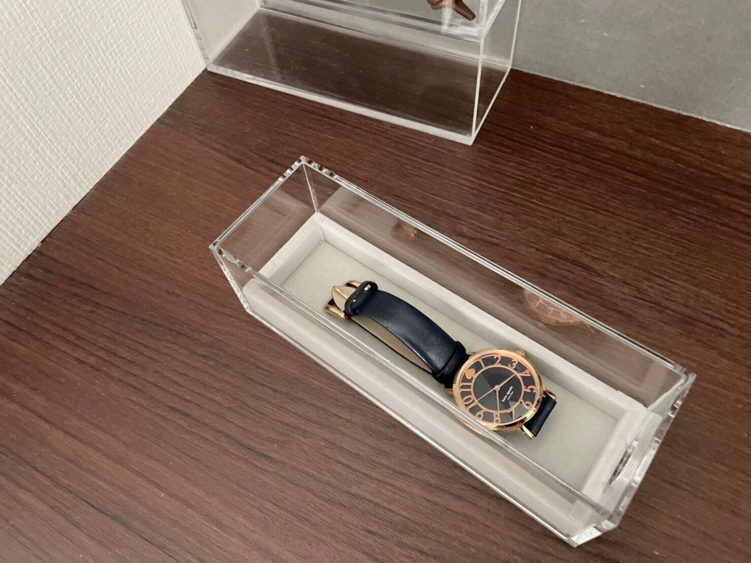 無印良品で販売されている「アクリルメガネ・小物ケース」は、アクリル素材で透明で中身が見え、何が入っているかが一目瞭然。場所を取らずメガネや時計を収納でき、おしゃれに使える商品です。