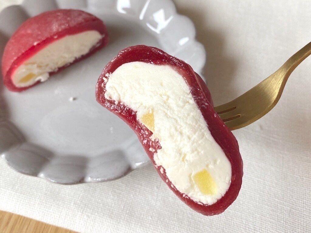 国産の角切りりんごと、クリームチーズ入りのクリームをもちぷる食感のわらび餅で包んだスイーツです。冷凍された状態で販売されているので、食べる3~4時間前に冷蔵庫で解凍するとおいしく食べられます。