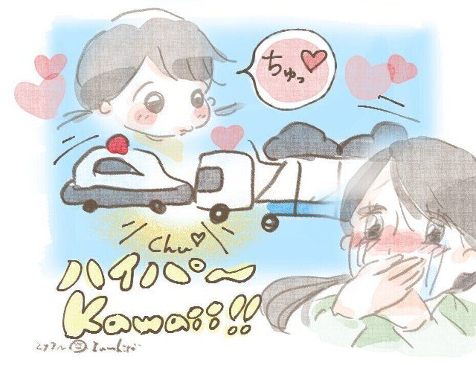 娘ちゃんパトカーは、ママカーキャリアにまさかの「ちゅ!」。想像を超える展開に、ママも「ハイパーKawaii!!」。思わずにっこりしてしまう結末となりました。