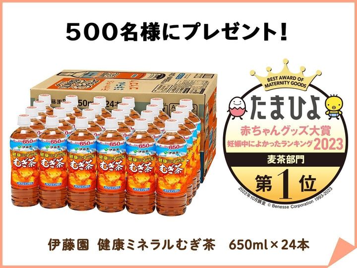 500名様にプレゼント!アンケートに答えて、「健康ミネラルむぎ茶」ペットボトル1ケース(650ml×24本)を当てよう