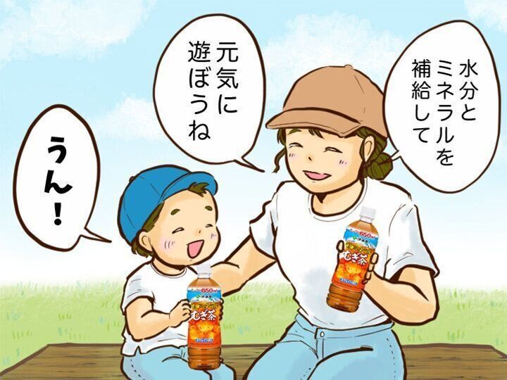 子どもたちは小さいころから「健康ミネラルむぎ茶」を飲んでいるそうで、ゴクゴク飲んでは「はぁ~おいしい!」といつも言っているのだとか。