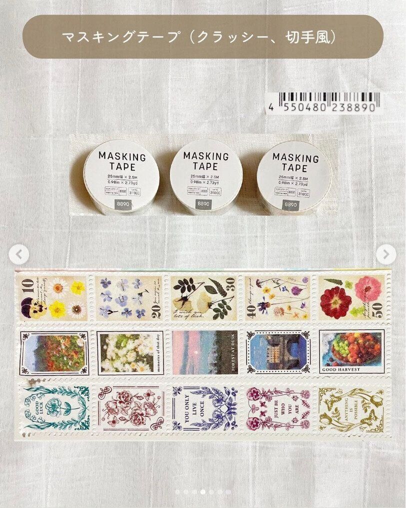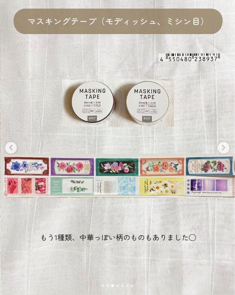 実はマスキングテープも種類豊富なダイソー。新作チェックしている方も多いのではないでしょうか?こちらは優雅な雰囲気でちょっとノスタルジーを感じるモディッシュ柄。繊細なフラワー柄が素敵ですね。