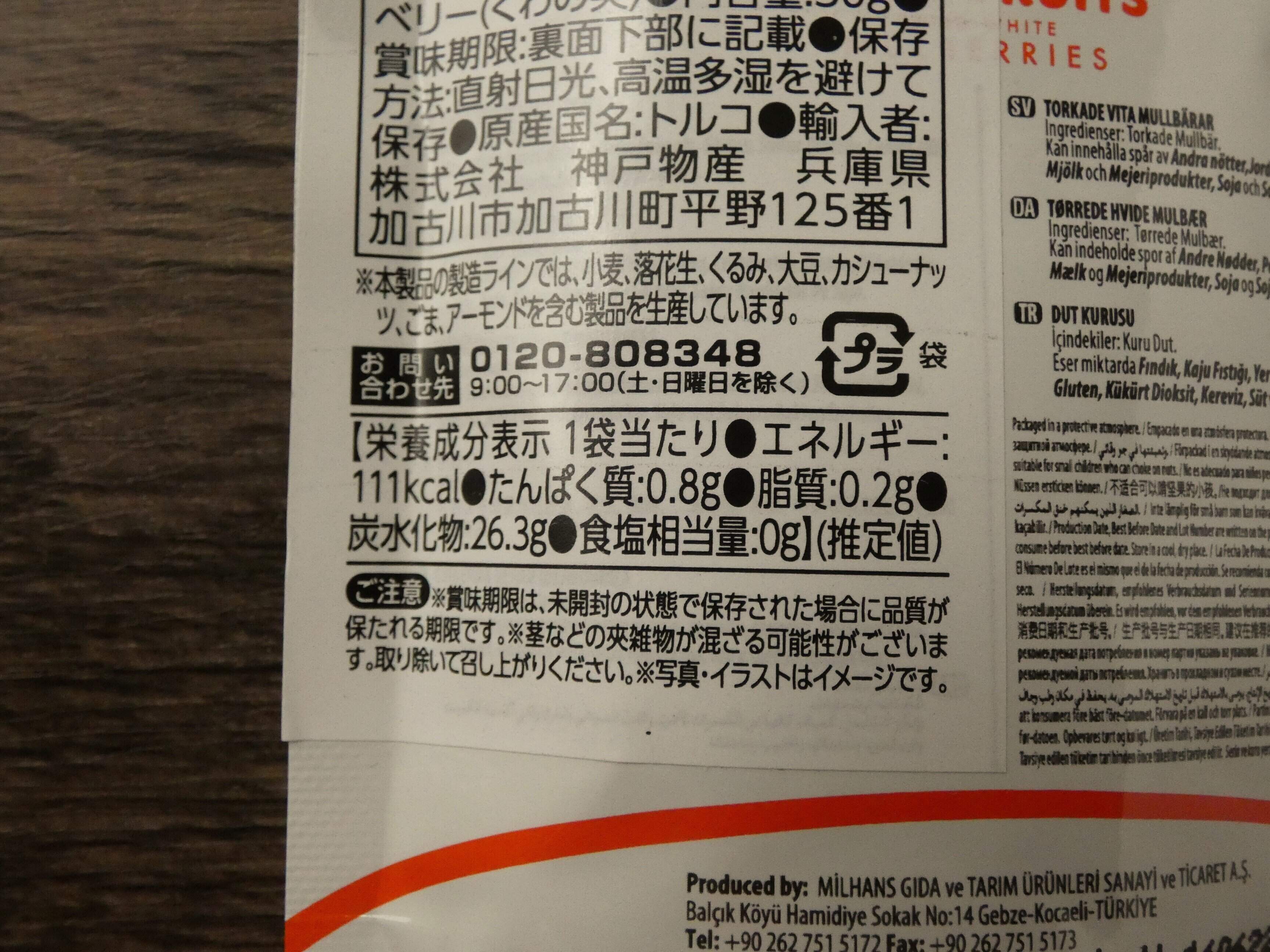 トルコ直輸入のドライフルーツで、白いくわの実です。