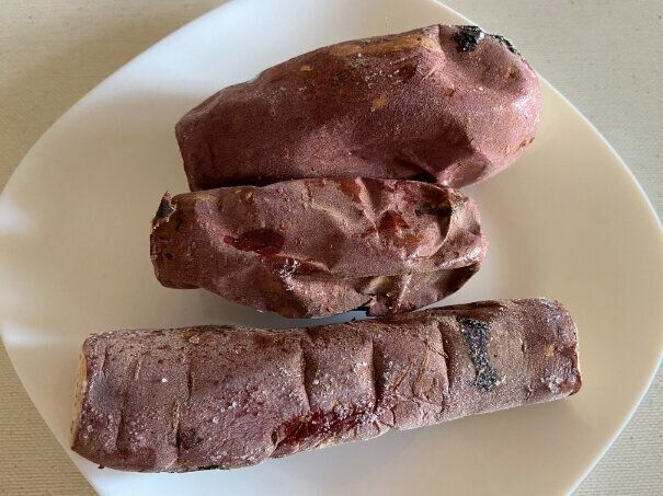 電子レンジで2分ほど温めると、ねっとり柔らかく芋ようかんのような味に。砂糖不使用でさつまいもの自然な甘みだけ、というのが信じられないくらいとっても甘くておいしい焼きいもです。