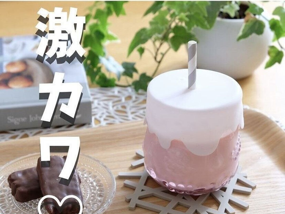 クリームみたいでかわいい!とSNSを中心に人気を集めている「シリコーンカップカバー」(110円)。グラスにかぶせるだけでかわいく、ドリンクがこぼれない便利なアイテムです。