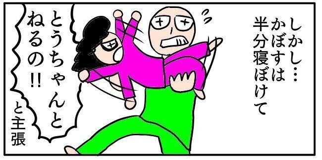 「とうちゃんとねるの!!」とかぼちゃんは寝ぼけながらも強いアピール。