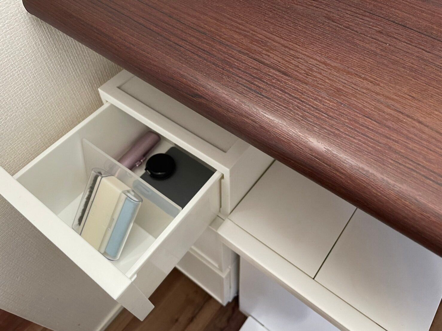 コンパクトな設計なので、収納にも困りません。デスク脇の引き出しにもスッキリ入り、使いたいときにすぐ取り出すことができます。家用、オフィス用と2台持ち、引き出しに忍ばせておくのもいいですね。