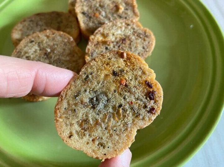サックサクで軽い食感の香ばしいラスクにしっかりとしらすの味わい、絶妙な塩気と唐辛子の辛さ、ガーリックが香って旨みがたっぷりです。筆者は、実際にしらすを使ったペペロンチーノのパスタを作ったことがあるので、しっかりこのラスクで再現されていることに驚きました。