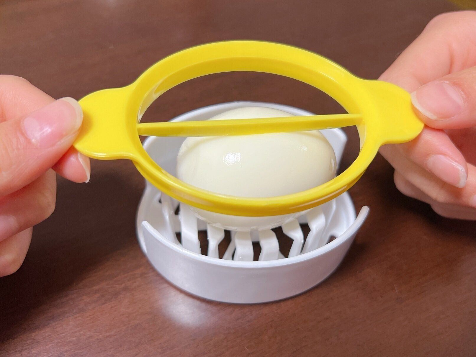 包丁で切るとくっついてしまう、糸だと面倒……というゆで卵のカットをダイソーの3WAY「卵切り器」を使って簡単にキレイにカットしてみてくださいね。