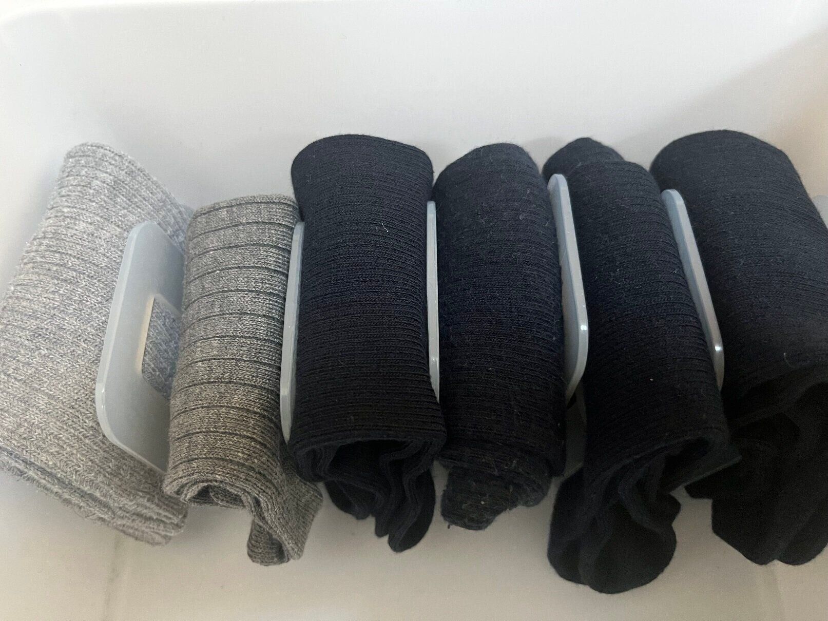 こちらは1パック110円で3個入り。厚地のタイツも広がらず、立ててすっきりと収納できます。大きなサイズの靴下などにおすすめです。
