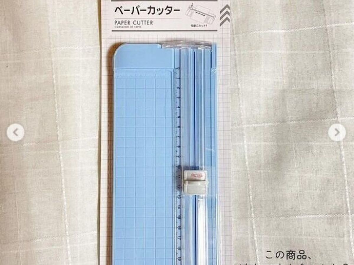 紙をハサミで切ると、どうしても曲がってしまったり、切り口がギザギザになってしまったりしますよね。カードや重要な書類などは、できるだけまっすぐきれいに切りたいもの…。そんなときは、こちらの「ペーパーカッター」330円がおすすめです。