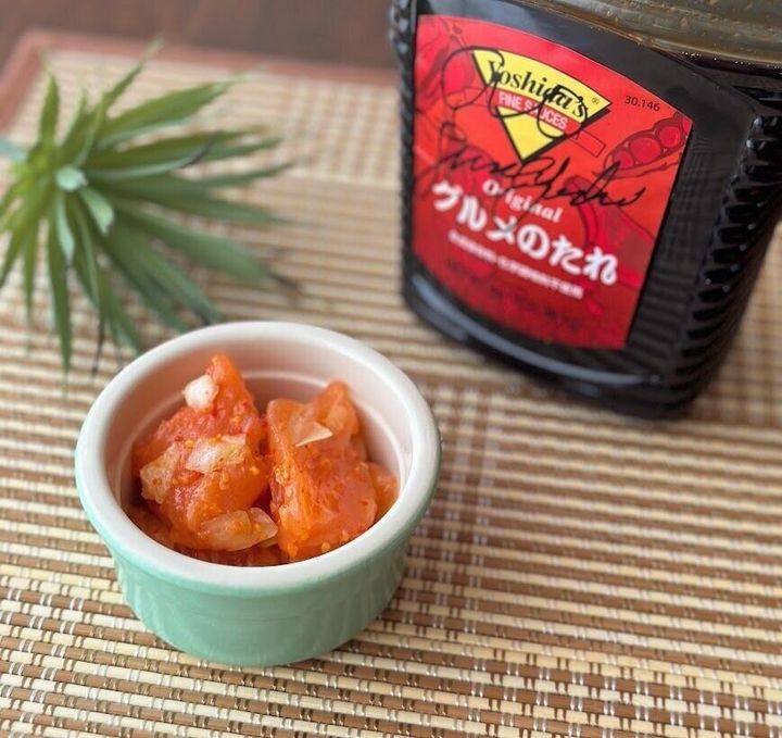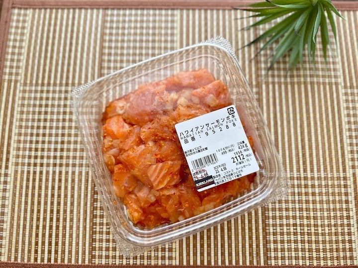 コストコ鮮魚コーナーで販売中の、サーモンポキ。これに、ヨシダソースをチョイ足しするというアレンジ!これがまさに絶品でした!