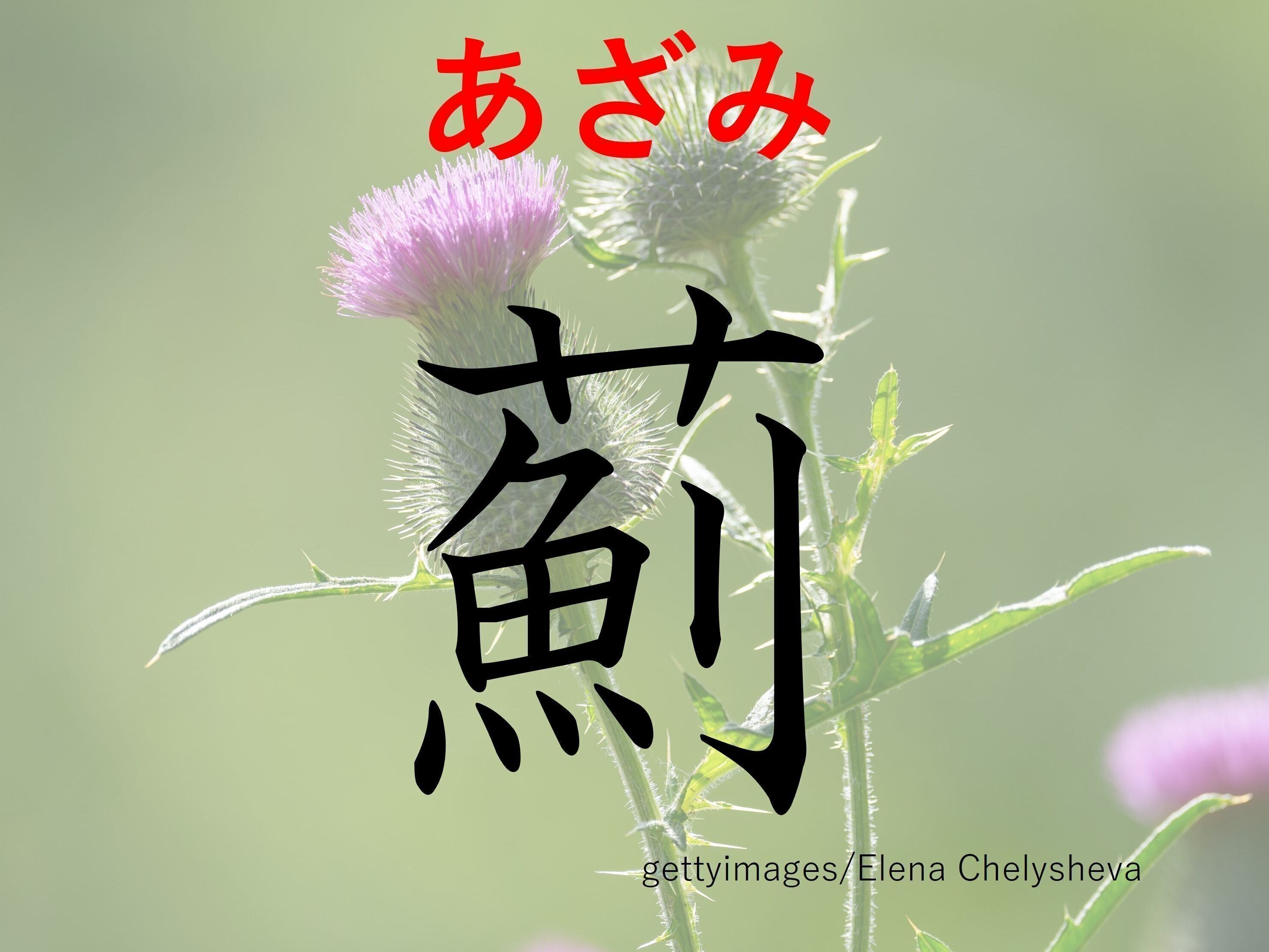 「くさかんむり」の下に「魚」と「りっとう」で薊。魚に関係ありそうな植物が想像できますね。