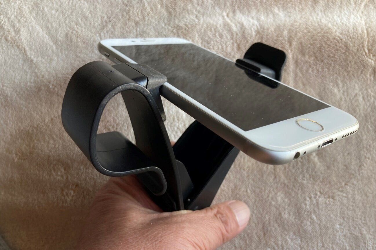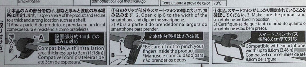 使い方は棚に本体を差し込んで固定して、スマホクリップでスマホを挟むだけです。