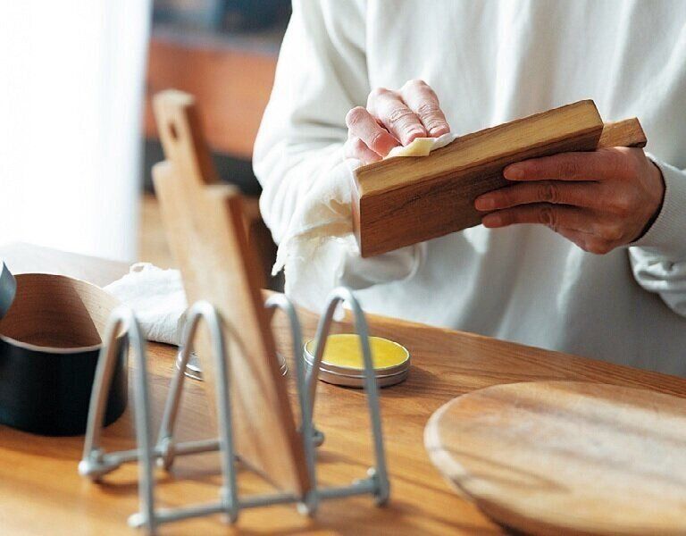 木の道具は、そこにあるだけで雰囲気をやわらげてくれるから好きという加奈子さん。「お手入れはサボりがちです」と笑いますが、いい味わいに育っています。