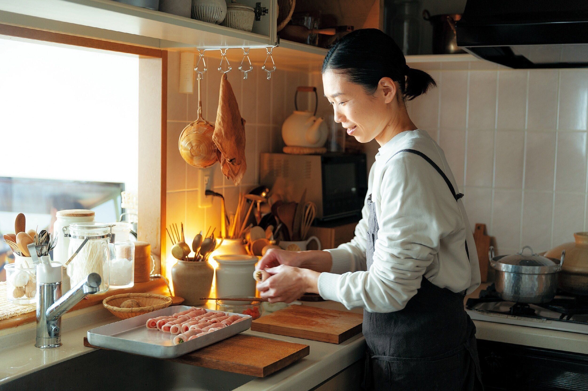 そんなときに、巻いた豚肉を並べるのが、ちょっといぶしのきいた、大好きなアルミのバットというだけで、なんだかやる気が出るもの。洗濯物を移動させるかごが、母から譲ってもらったお気に入りというだけでも、洗い終わった食器が並ぶ水きりかごの中の風景が美しいと感じるだけでも、なぜかうれしい気持ちになれて、動けてしまう。