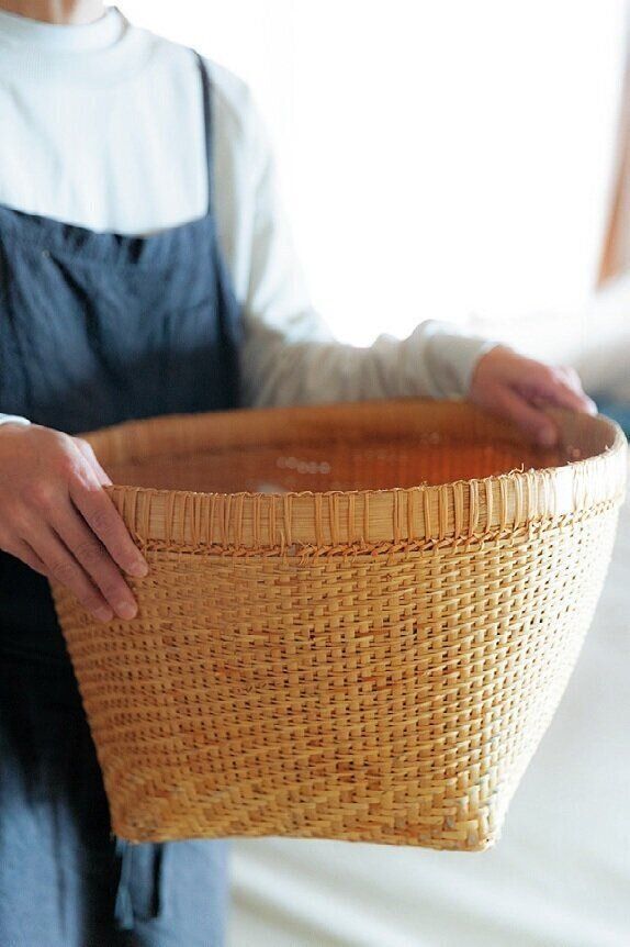 「子どものころから実家にあったかごは、母から譲ってもらいました」。洗った洗濯物を移動させるときに活躍。買った場所も、どこの国のものなのかも不明。