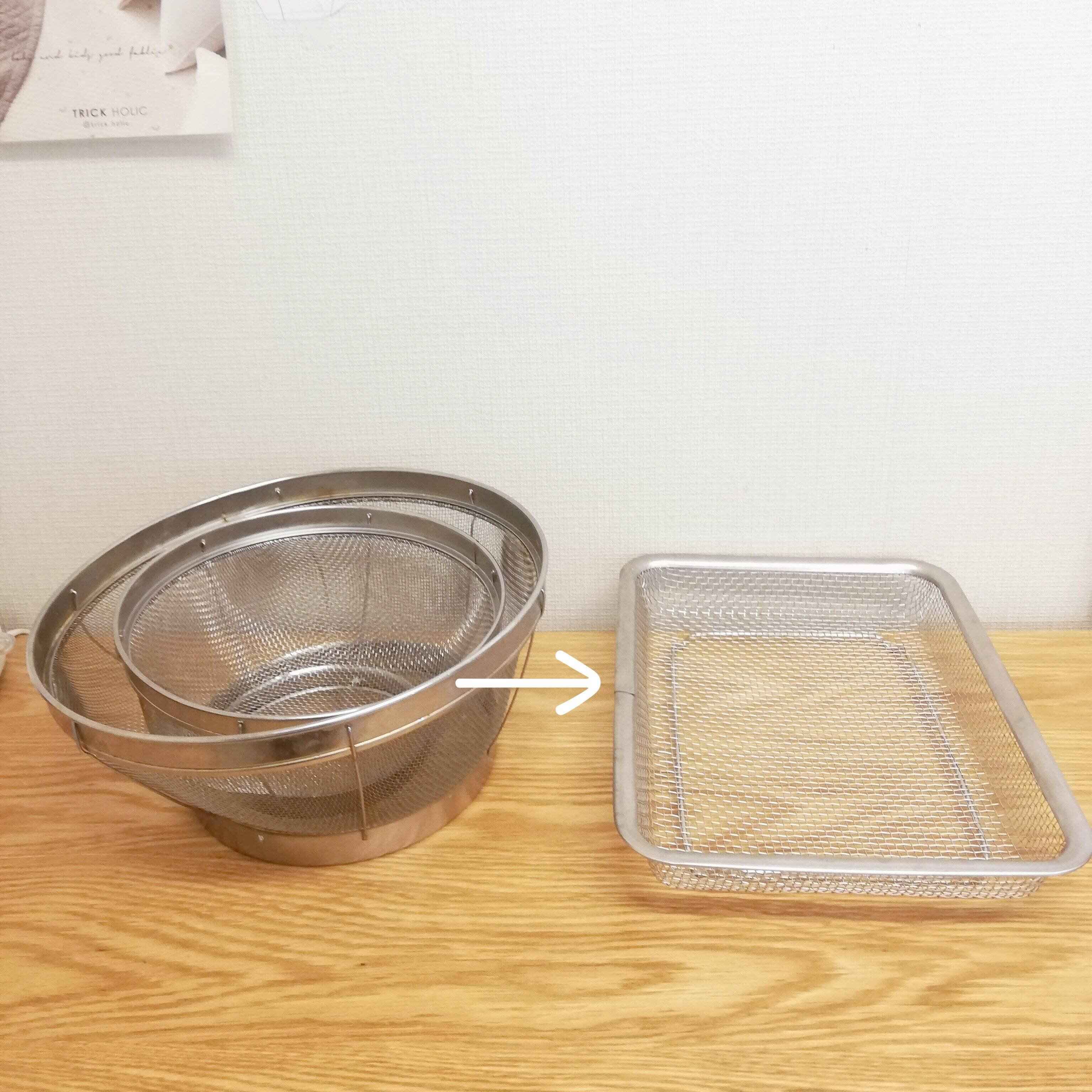 メッシュトレーの大サイズがあれば、かさばる深ザルが不要になります。