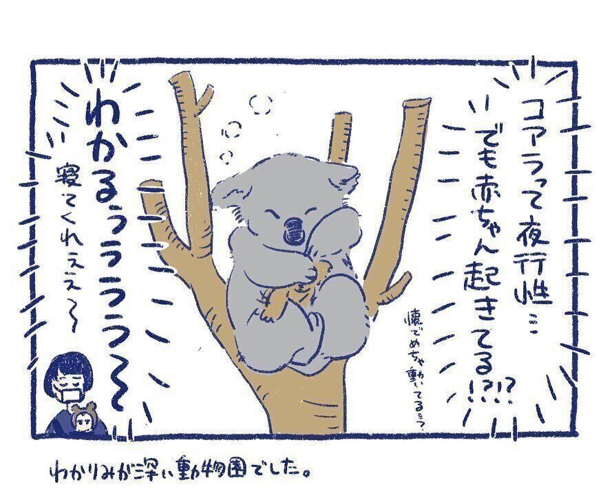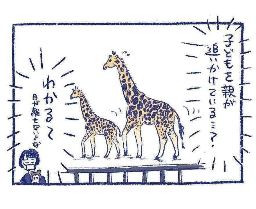 「当時、育児に辛くなったら実家に帰って過ごしていました。このときも多分、辛くなって帰っていたと思います。純粋に娘と初めての動物園を楽しむつもりが、たまたま動物の赤ちゃんがいっぱいの時期に行ったことで、動物たちの子育てを目の当たりにし、『あ、動物の親も育児大変そう……同じ……』と思いました」