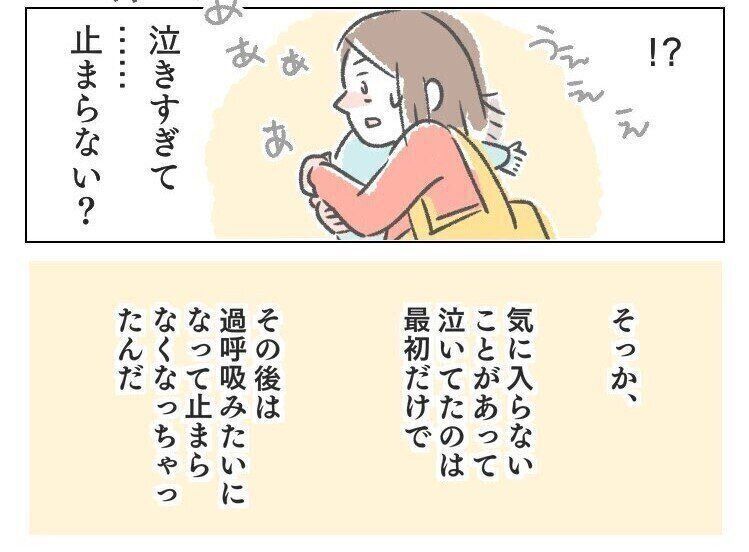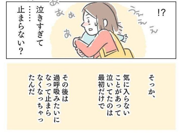 それを聞いて、にいどゆうさんは驚きました。イヤイヤだと思っていたギャン泣きは最初だけ。その後は過呼吸のように自分の意思では止められなくなってしまっていただけだったのです。