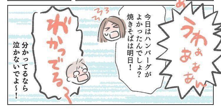 「わかってる~!」と返事をしつつも泣き止む様子はありません。