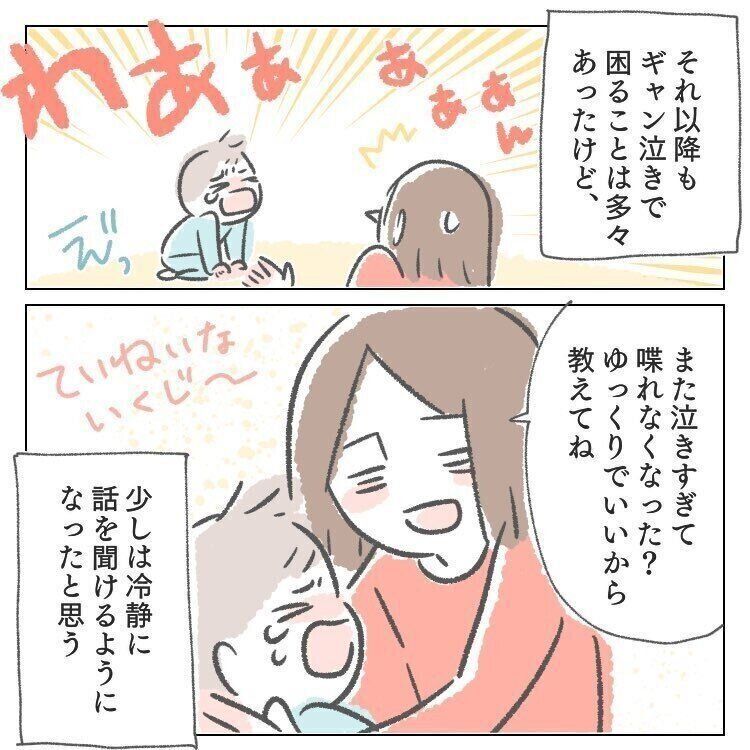それ以降もギャン泣きで困ることは多々あったものの、少しは冷静に話を聞けるようになったといいます。