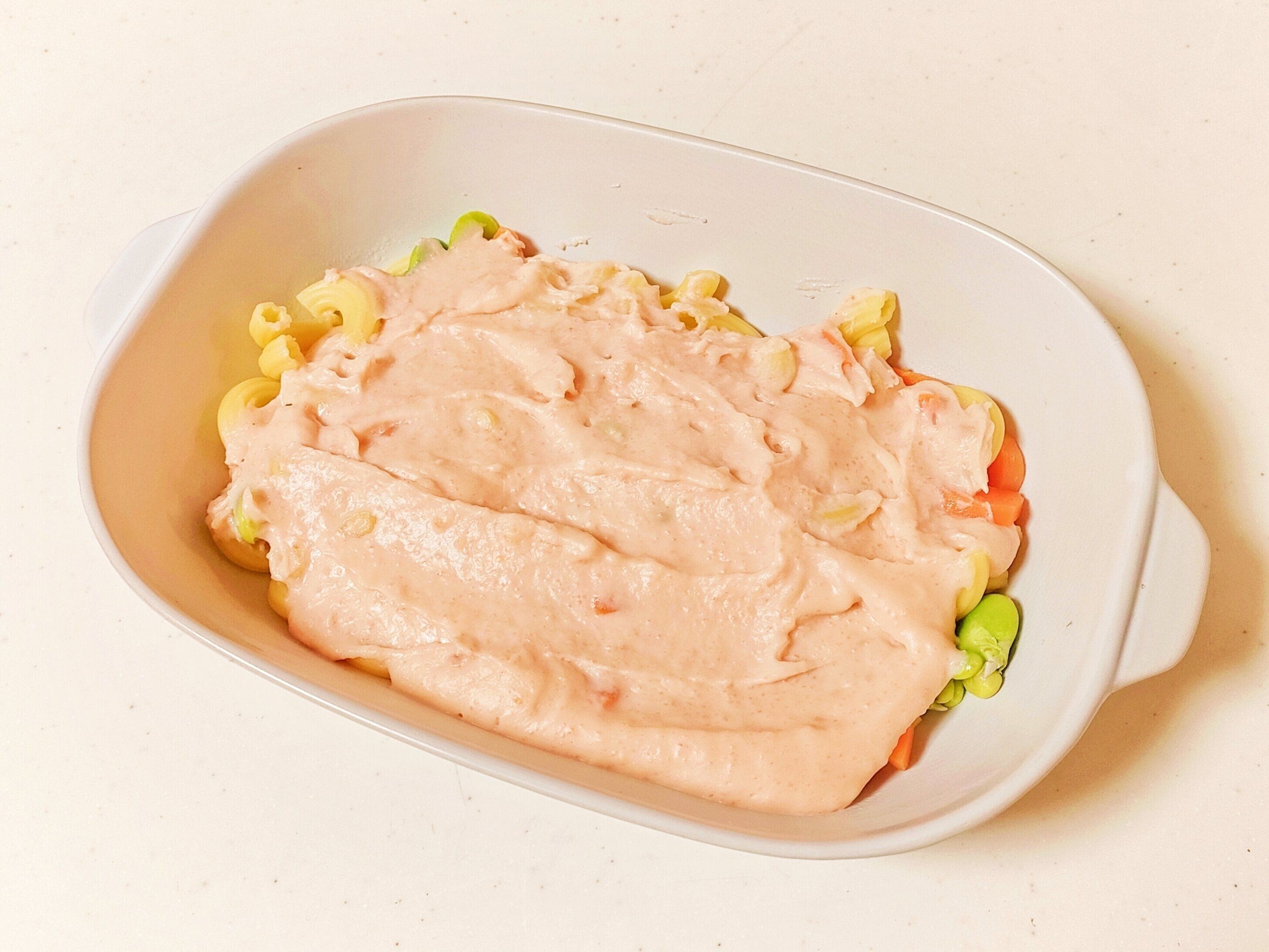 二つめは、ホワイトソースをたらこスプレッドでつくるたらこグラタンです。