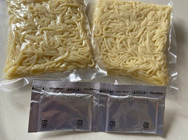 麺とソースがそれぞれ2袋ずつ入っていました。麺は1袋160gです。