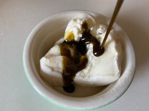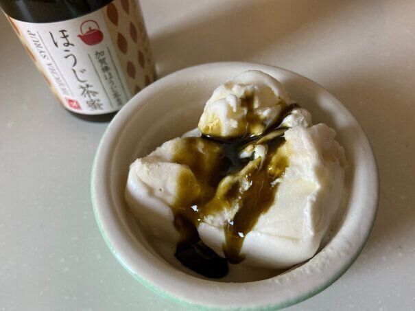筆者と子どもたちのお気に入りは、バニラアイスクリームにたっぷりほうじ茶蜜をかけたもの。