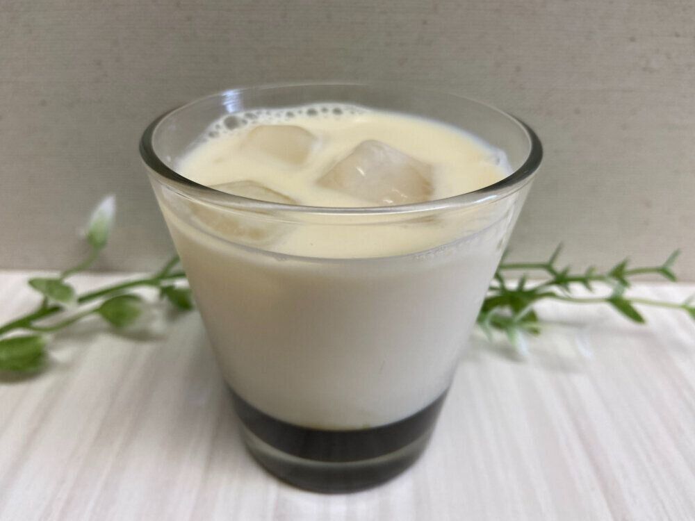 グラスに氷を入れてほうじ茶蜜、豆乳を注ぎました。アイスほうじ茶ソイラテの完成!